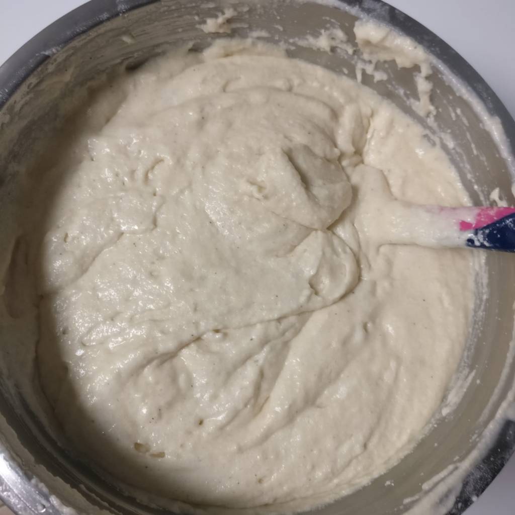 4- Incorporamos las harinas tamizadas, y mezclamos con mucho cuidado.